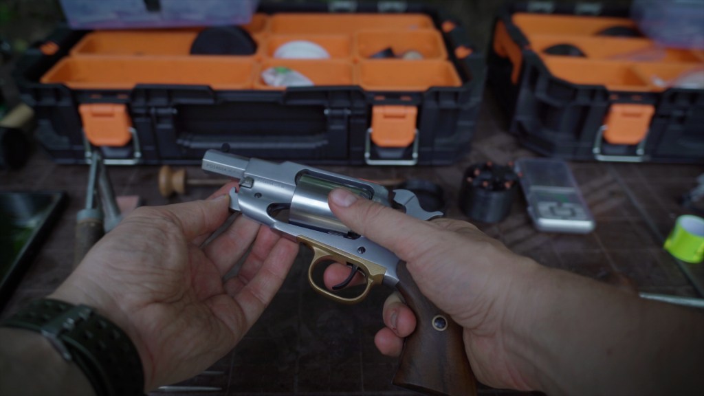Oczywiście obliczenia te nie biorą pod uwagę szczeliny. W rewolwerze podczas rozpędzania pocisku część gazów uchodzi przestrzenią pomiędzy bębnem a lufą i w związku z tym generowana energia oraz ciśnienie są niższe. Każdy rewolwer ma trochę inną szczelinę i może mieć też zabrudzone nagarem czoło bębna, przez co ucieczka gazów może się zmieniać w czasie strzelania. Tutaj pomoc kalkulatorów się kończy i jeśli chcemy się dowiedzieć jak będzie to wyglądało w rzeczywistej broni, pozostaje przejść do punktu trzeciego, czyli samodzielnych eksperymentów.